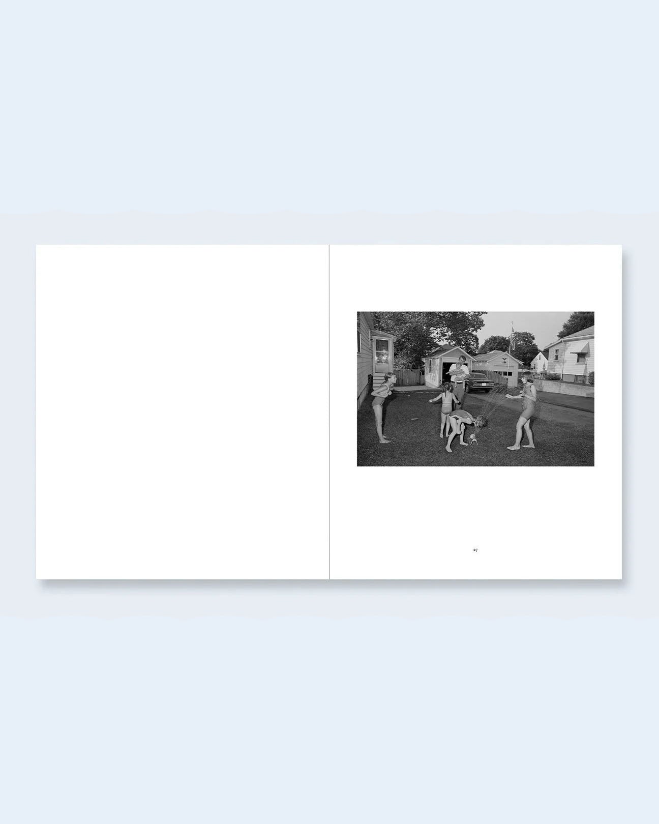 Sohier finds her subjects in the open spaces of parking lots, front yards and public streets, and in the quieter confines of modest homes, back yards and porches. She depicts “the boredom of hot summer days” with a precise attention to the surroundings, with cold drinks, propane grills, sprinklers and pets each providing small comforts and revealing the quiet tempo of the days. Sohier’s observation that “images…gain a historical perspective over time that adds to their interest,” is proven true in this collection of black and white images.