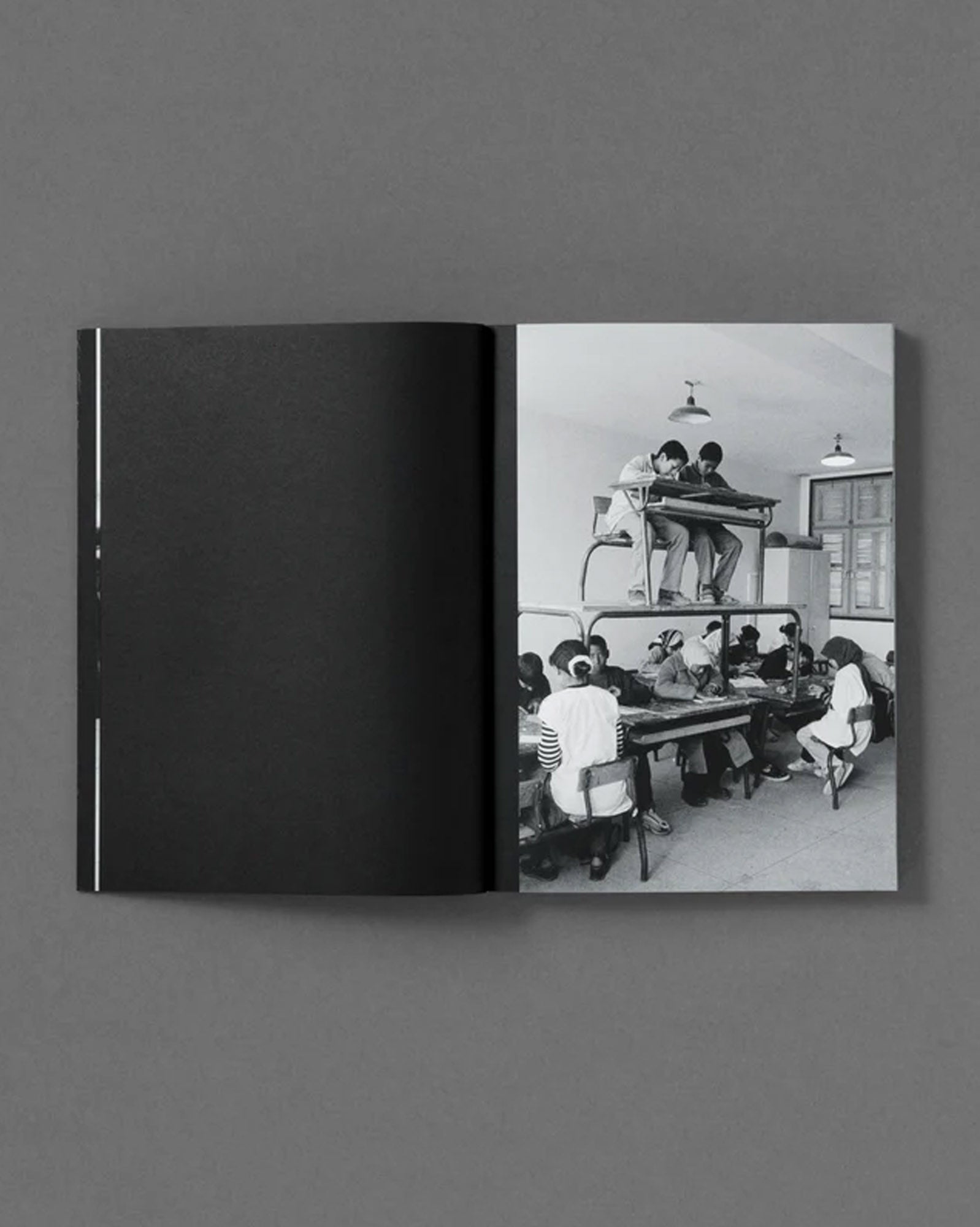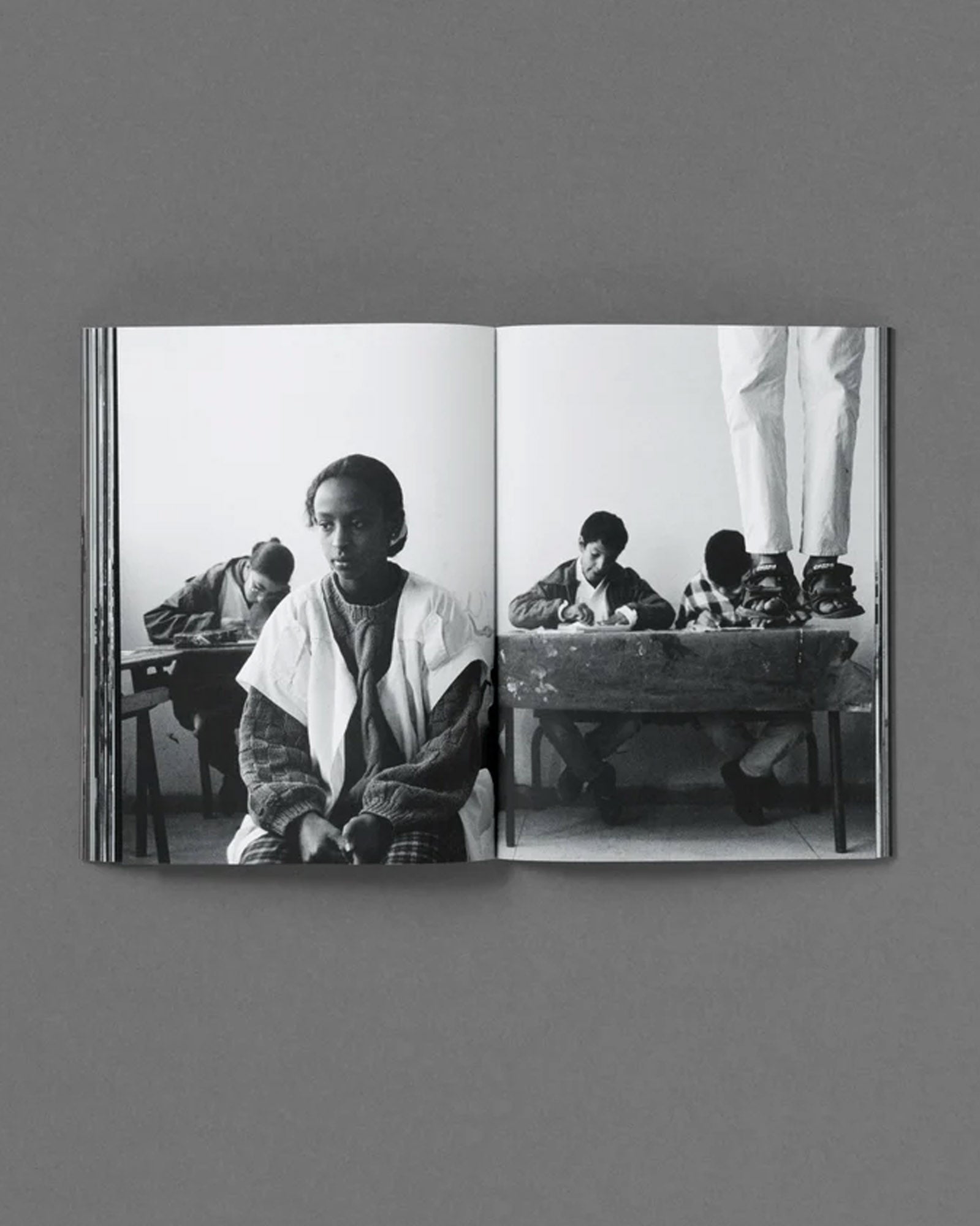 The resulting images created with his students are marked by tension and alienation, blending absurdity, humour, and unease in their exquisitely framed and obliquely disarming compositions. In juxtaposing the monotony of the classroom with a visual exploration of both freedom and control, The Classroom builds a playful and existential critique of postcolonial identity, where childlike creative gestures merge into a more ambiguous aesthetic that hints at oppression, violence and isolation.